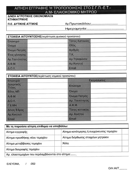 Μητρώο Ελαιοπαραγωγών ΠΕ Δυτικής Αττικής