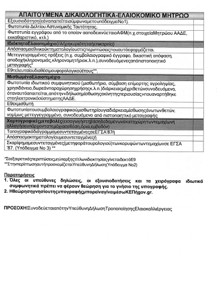 Προσοχή! Όλες οι υπεύθυνες δηλώσεις, οι εξουσιοδοτήσεις και τα χειρόγραφα ιδιωτικά συμφωνητικά πρέπει να φέρουν θεώρηση για το γνήσιο της υπογραφής.